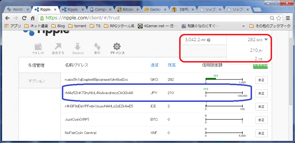 ※:私が知る範囲では、RippleのWGC貢献度による配布?が行われ始めたのは2013年11月くらいからだが、ソレまでにRippleでのやりとりを行うソフトの仕組みは出ていたはず。なのにまだ対応できていない。(他の取引所ではRippleの取り扱いを既に行っている。しかも個人で1ヶ月程度で対応してる)