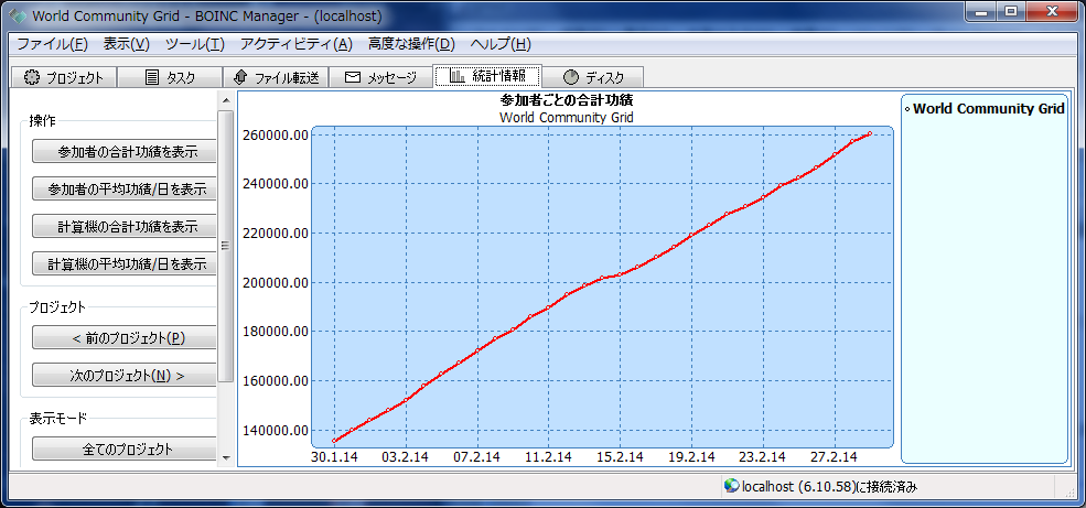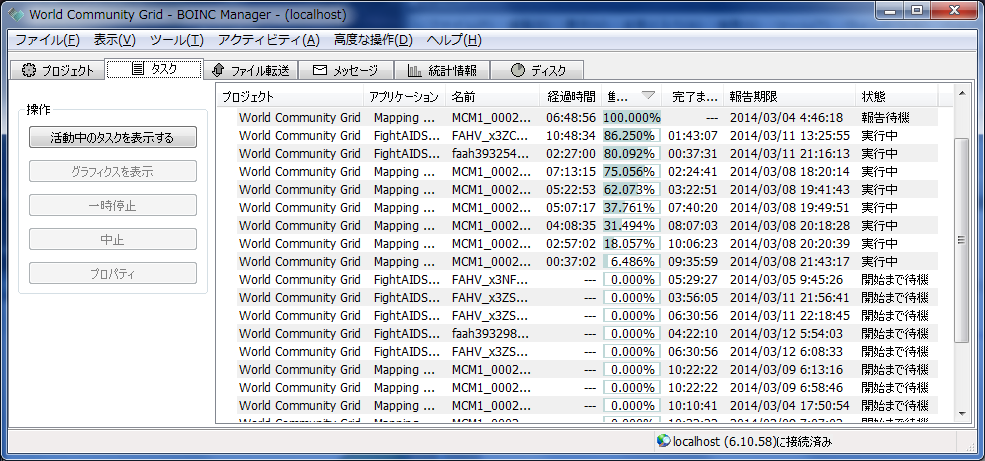 WCGの計算処理稼動状態が以下。8つの処理を同時進行してます。