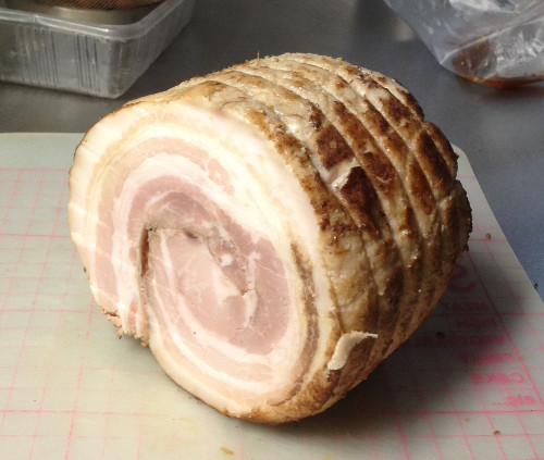 切る時は冷やしておいたやつを切り、切った後で40度くらいで温めてあげると豚の脂身部分がやわっこくなって良い感じに。