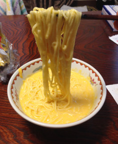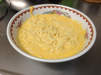 ネットで「スープがチーズなラーメン」の作り方を見つけ、チーズ好きで変わり物食事に興味のある私。